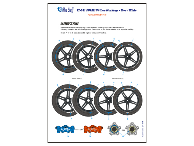 ブルースタッフ 1/12 ドゥカティ スーパーレッジェーラ V4 タイヤメーキングデカール ブルー、ホワイト タミヤ対応 12-041
