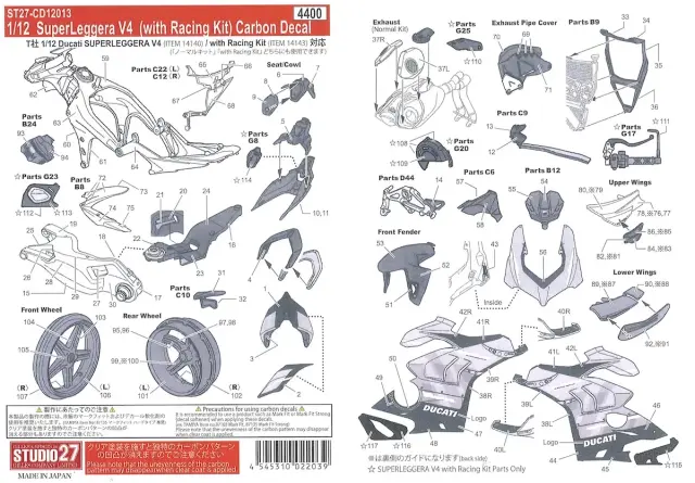 スタジオ27 1/12 ドゥカティ スーパーレッジェーラV4 レーシングキット カーボンデカール タミヤ対応 CD12013