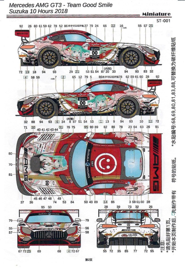 ミニチュアデカール 1/24 メルセデス AMG Evo 鈴鹿 10h 2018 No.00 フルデカール タミヤ対応 CS013/MH24010