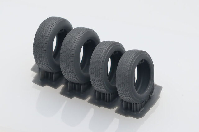 ディティルアップパーツのホイールとしては究極の完成度のものになると思います。スポークは1本1本金属線を組み込んでいきますが、スポークを組み込む穴のサイズが絶妙に調整されているので差し込みはスムーズで尚且つテンションがかかるため抜け落ちていく心配もありません。スポークをすべて組み終わってから軽く接着剤で固定してあげることでしっかりと強度のとれるホイールが完成します。箱車でも一際目立つ足元のドレスアップにぜひご利用ください。