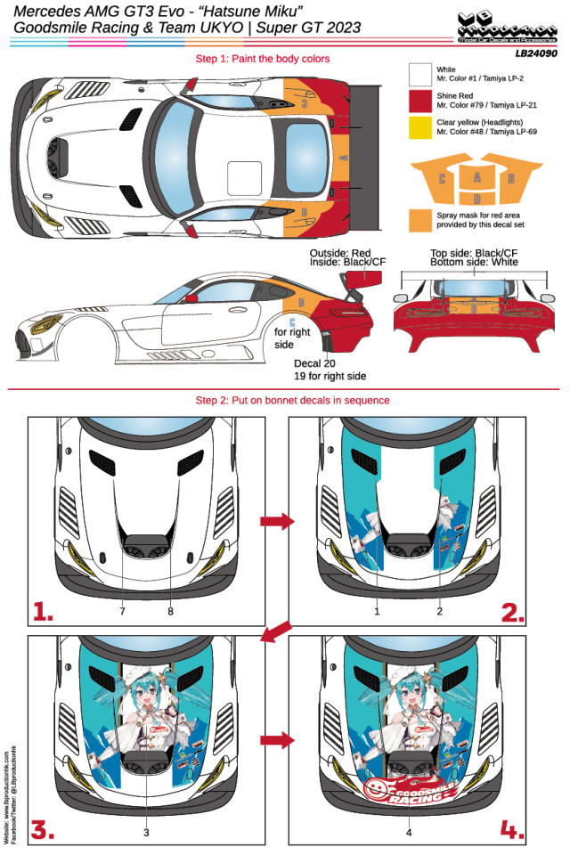 LBプロダクション 1/24 メルセデス AMG GT3 Evo. チーム右京 スーパーGT GT300 2023 No.4 フルスポンサーデカール タミヤ対応 LB24090