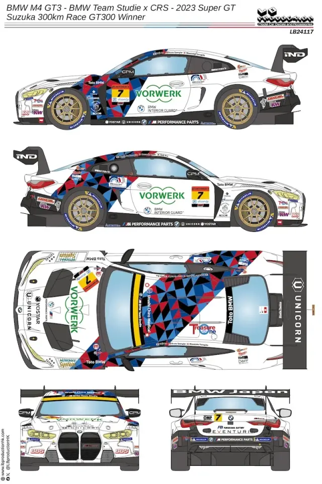 LB Production 1/24 BMW M4 GT3 BMW Team Studie X CRS 2023 Super GT Suzuka 300km GT300 Winner Full Decal (for nunu) LB24117