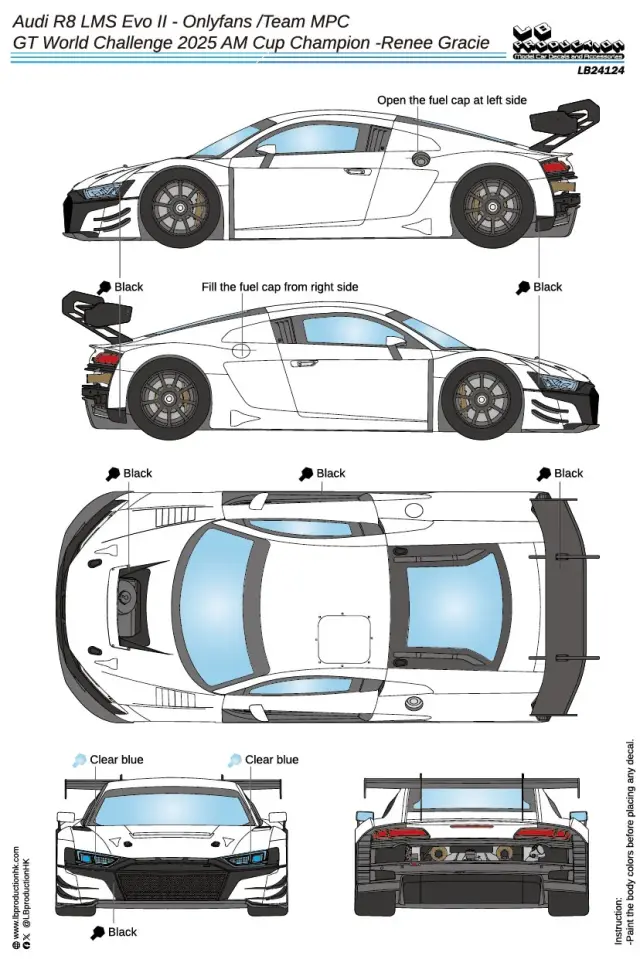 LB Production 1/24 Audi R8 LMS Evo II - Onlyfans /Team MPC - GT World Challenge 2025 AM Cup Champion -Renee Gracie