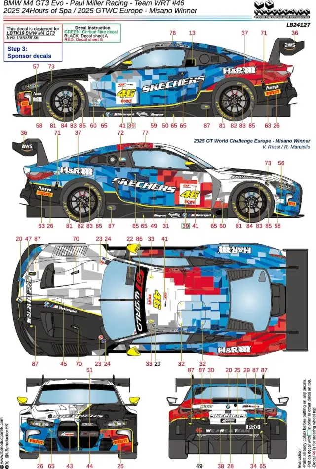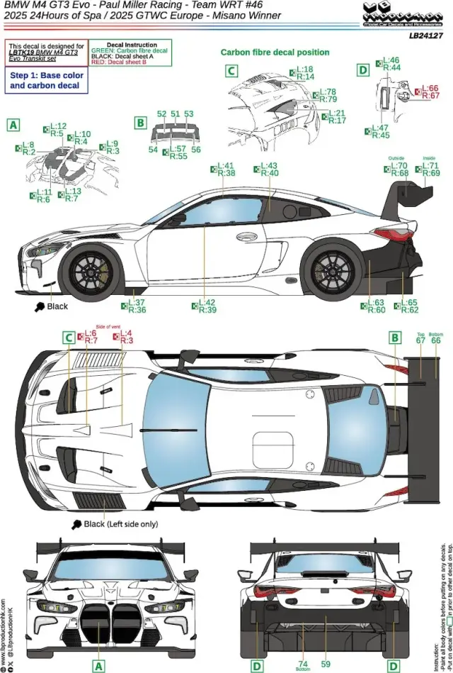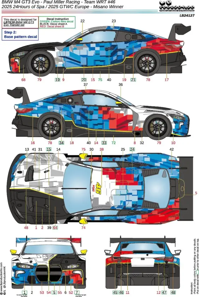 LBプロダクション 1/24 BMW M4 GT3 Evo チームWRT スパ 24h 2025/GTWC ヨーロッパ ミサノ ウィナー No.46 フルデカール nunu対応 LB24127