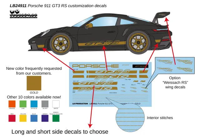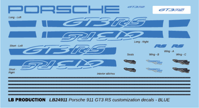 LBプロダクション 1/24 ポルシェ 911 GT3 RS カスタムデカール 全11色から1色選択 LB24911