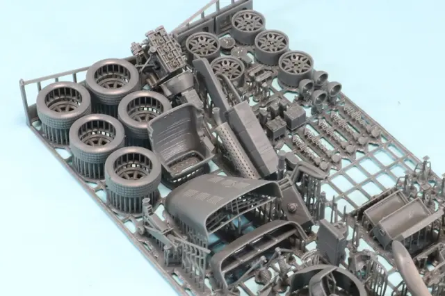 ロータス7譲りのオープン2シーター、フロントエンジン後輪駆動のスーパースポーツを再現。BDRバージョンはベルト駆動16バルブのコスワースBDRユニット(1.6〜1.7Lで最高170馬力)を搭載した軽量モデルで、チューブラーフレームやアルミボディのディテールまで精密に造形。。