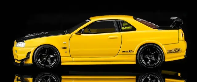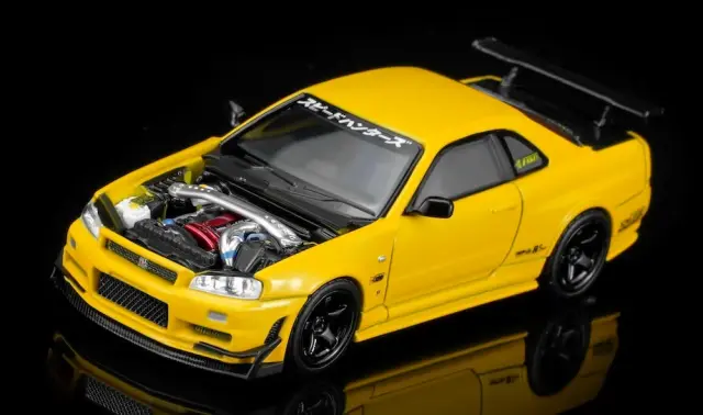 Motor Helix 1/64 Nissan Skyline GT-R (R34) Custom Lightning Yellow GT Aero Kit M63475