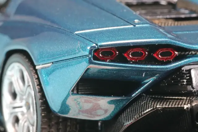 ・再現ポイント:ムルシェラゴのアルテミスグリーンを、新型カウンタックLPI 800-4を元に忠実に再現。外装だけでなく内装のカラーリングも徹底的に追求。