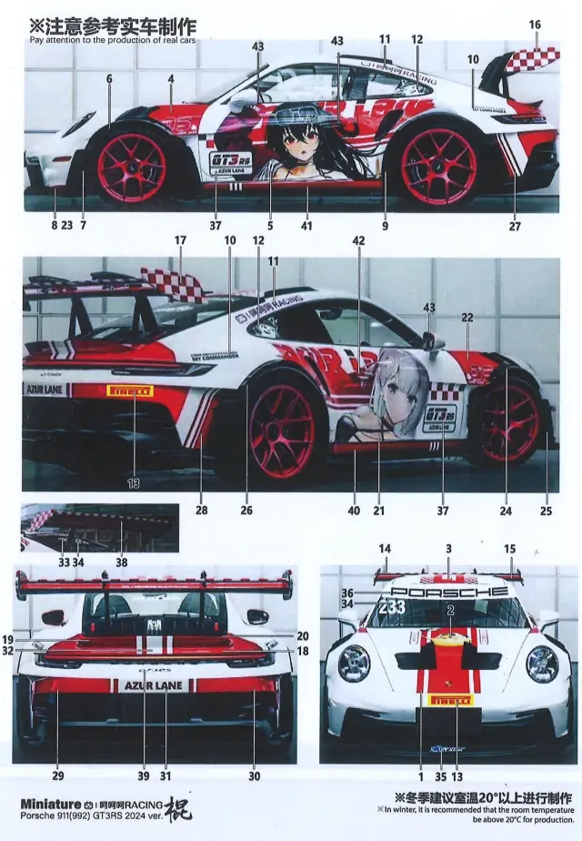 ミニチュアデカール 1/24 ポルシェ 911 992 GT3 RS "アズールレーン" 2024 No.233 フルデカール MS24030