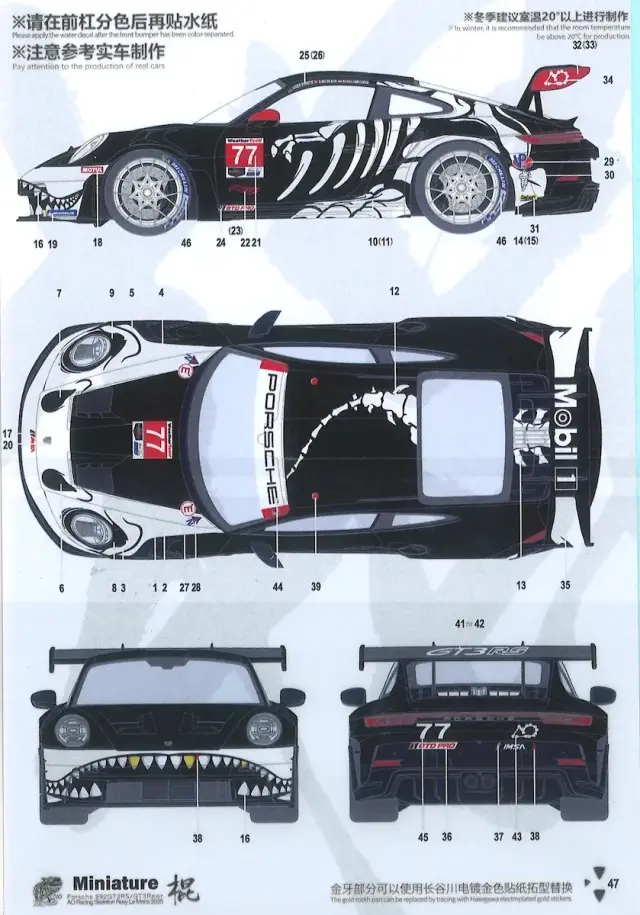 ミニチュアデカール 1/24 ポルシェ 911 GT3 R Rexy スケルトンダイナソー Livery No.77 フルデカール MS24047