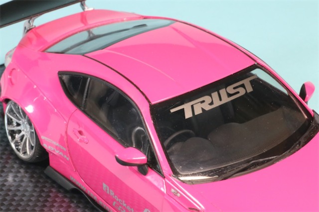 タミヤのプラモデルをベースにアオシマから発売されているフェンダー、ホイール、GTウイング、RBロゴデカールを組み込んで製作しています。正直なところ全体の塗装の仕上がりに甘さが残っています。