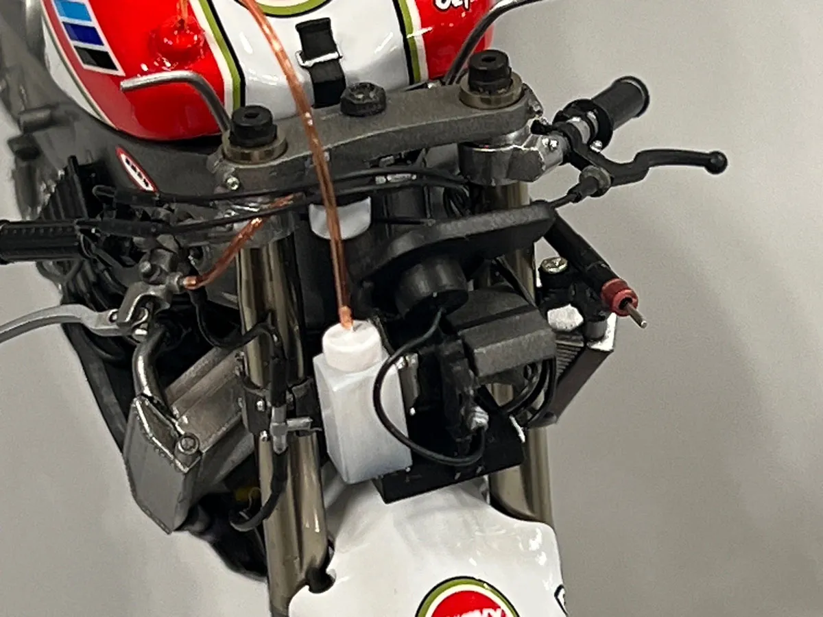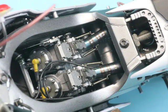 この部分の処理だけでも十分の価値がありますが、各部ディティールアップにより全体が引き締まった仕上がりになっています。全体をみていると製作者感性の良さも感じることができます。モデラーオジナル作成のフロントスタンドがおまけで付きます。