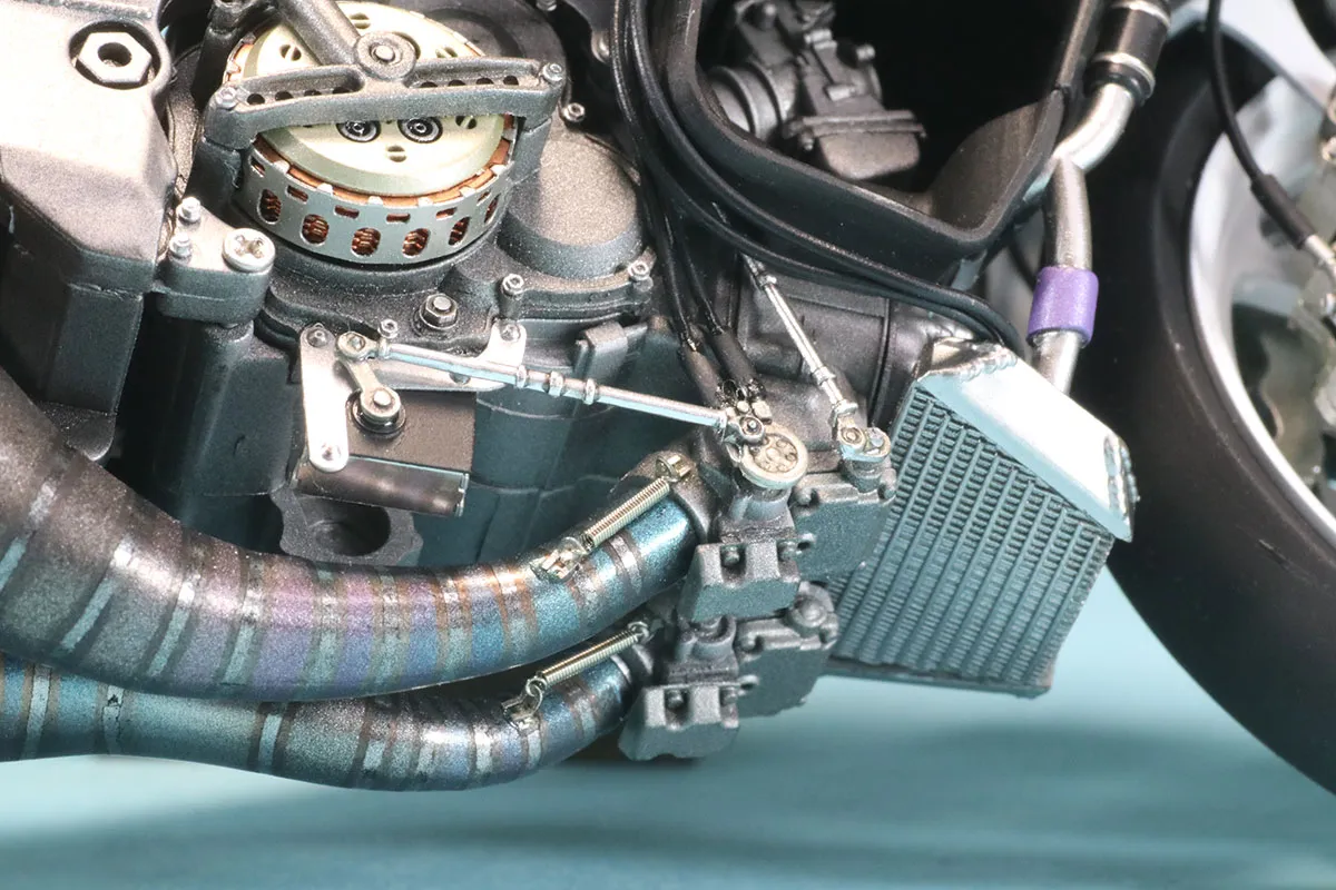 ・ホビーデザインのパーツを使用(クラッチ、チェーン、ブレーキディスク、ラジエターホースバンド、アンダーマウルダクトのメッシュ、タンクキャップ、カウルのリベット、マフラースプリング、など)