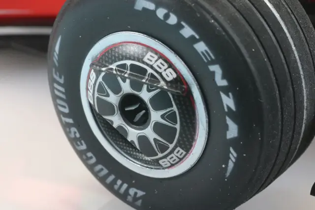 ブリヂストンロゴはタミヤのタイヤテンプレートを用いて吹き付け塗装。