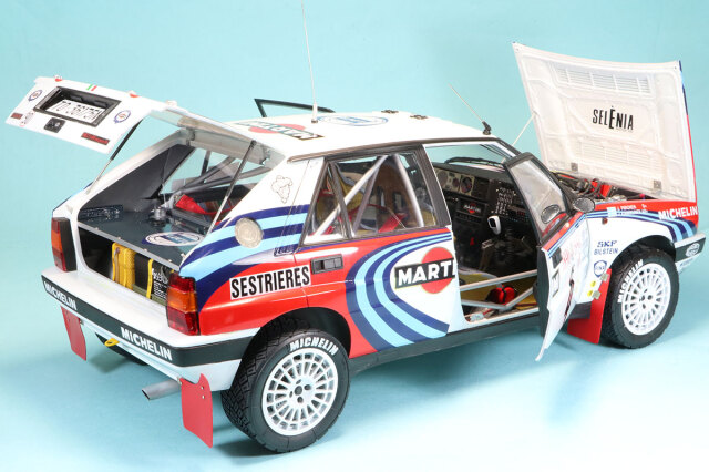 て差し替えています。タイヤは付属のスリックタイヤを使わず実際に使われたオフロードタイヤを3Dプリントで出力しなしています。スリックタイヤもいいですが、ラリーカーとえばオフロードタイヤが似合いますね。12スケールという大きさを活かしモデラーのあくなきディティールアップを楽しんでいただける仕上がりになっています。