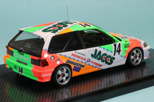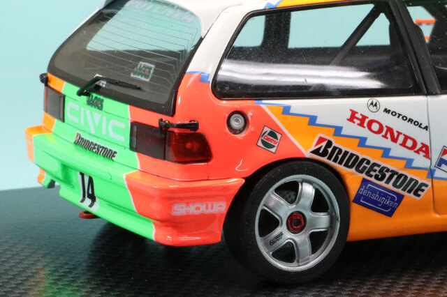 改造などなくキットストレート組みに、別売りオプションパーツのアンテナとボンピンを追加して仕上げています。クリアー後研ぎ出しをおこなっていますが、ベースキットの質にも依るところですがところどころ塗装に粗があります。
