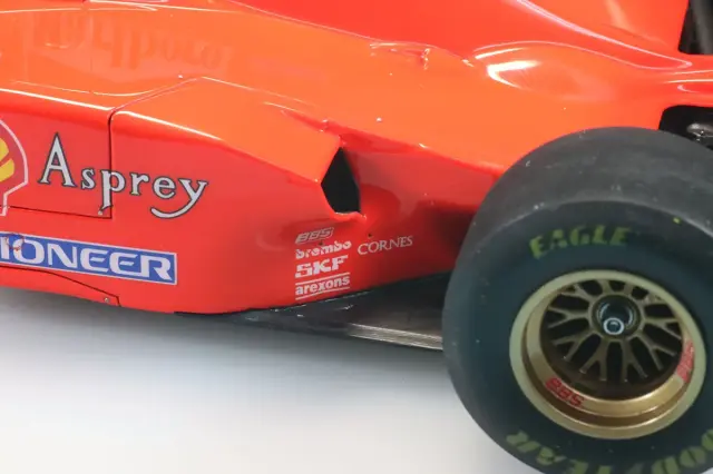 しかしF310BのデカールはCORNESロゴが不足、リヤウイングのマルボロはサイズが過大のため、それぞれミュージアムコレクションとタブデザインデカールを使用しました。