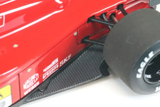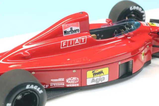 タメオのメタルキットベース完成品です。製作者は以前「ロータス 79 フォード イタリアGP 1979 マリオ・アンドレッティ フィギュア付き」や「1/43 フォード コスワース DFV エンジン」を製作したモデラーです。641というとフランスGPのフェラーリ F1通算100勝が印象にのこっておいるかと思いますが、このブラジルGPの優勝もプロストファン、フェラーリファンにとっては思い出に残るレースでした。プロストがフェラーリに移籍して初の勝利であり、シーズン初優勝、そしてセナの母国での勝利は貴重なものです。
