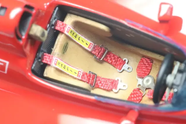 布製シートベルトとエッチング製のカウルキャッチピンを追加しました。シートベルトは実車と同じ取り回しで組み上げられています。