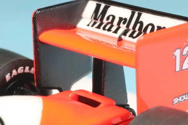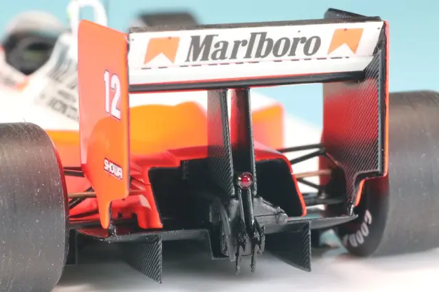 ・特徴2:モナコ仕様として特徴的なサイドポンツーンダクト形状、リアウイングフラップの形状も精密に再現。特にモナコGP決勝仕様を再現。