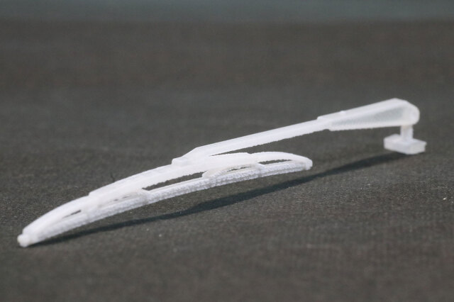 完成モデルのワイパーの紛失や破損などで交換する用にSMCさんへ依頼して作ってもらいました。全長50mm、アーム長30mm、ブレード長35mm、ロードカータイプをモチーフにしています。下処理なくラッカーやエナメル塗料を筆塗するだけで十分に再現できます。