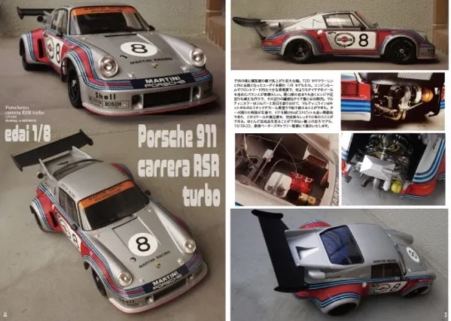 スポーツカー特集巻頭は伝説の大型キットエーダイポルシェ911カレラRSRターボ、ジョエルフュメイ原型の1/12レジンフェラーリ330P4、FPPモデル375プラス、MGモデル375MMの2台のカレラパナメリカーナ、