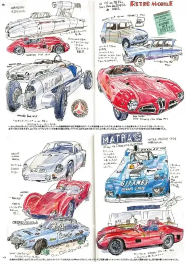 A4サイズの旅絵日記画集。2000年のレトロモビルと、2001年5月のパリの旅絵日記を本にしました。