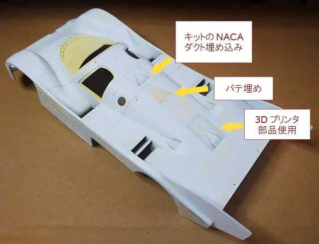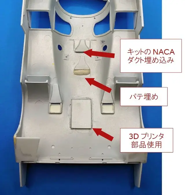 ・天井のNACAダクト:キットのボディ後端にあるダクトをくり抜き、移植します。