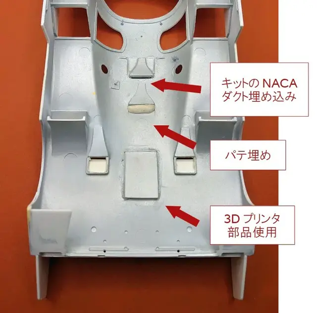 ・天井のNACAダクト:キットのボディ後端にあるダクトをくり抜き、移植します。
