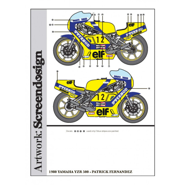 スクリーンデザインデカール 1/12 ヤマハ YZR500 Pernod 1980 パトリック・フェルナンデス ティンウィザードインターデカール製 (タミヤ対応) SD2022004