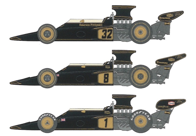 ・SHK-D472は置き換え&バリエーションデカールです。ベースキットの1972年英国/イタリア仕様に加えて、コクピットカウルとマーキングが大きく異なる1972年ベルギー、もっとも多くのウイニングマークが貼られた1972年米国、母国優勝で盛り上がった1973年ブラジルの各仕様も用意しました。説明書にはリアウイング翼端板などの型紙も掲載しています。ベースキット付属デカールは参照せず、すべてのマークをゼロから作り上げているので、ほかにはないデカールセットとなっています。
