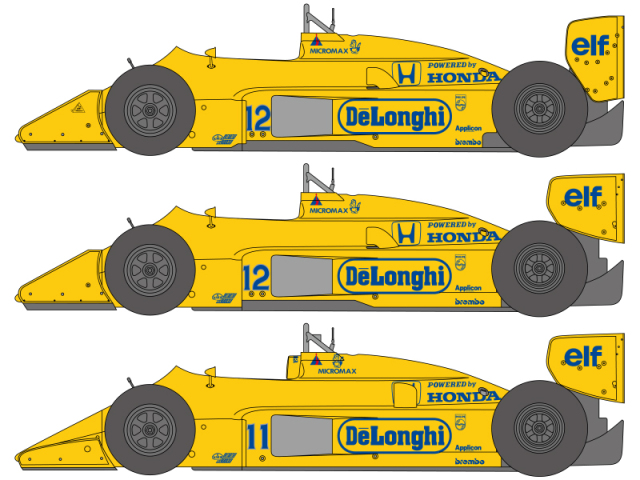 細部に誤りがあるベースキット付属デカールよりも正確に再現することに注力したのはもちろん、ハイダウンフォース仕様のリアウイング用デカールなど、付属デカールやSHK-D486には入っていないデカールを多数含みます。1年を通して絶えず変化し続け、決勝レースで11号車と12号車の形状が異なることが当たり前だったタイプ99Tですが、本製品はベースキットに比較的近い形状のベルギー11号車、モナコ11/12号車、デトロイト12号車の3戦4仕様対応としました。