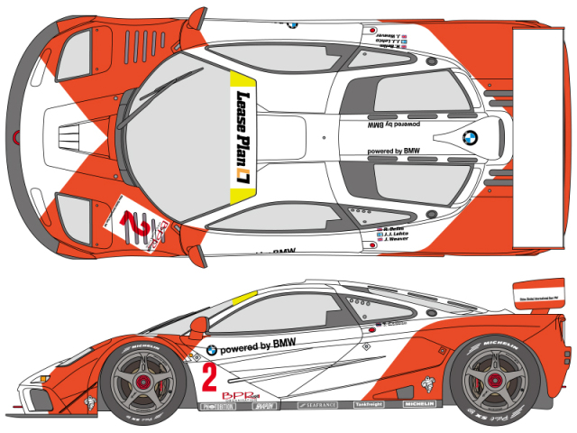 ベースキット付属デカールをトレースしていない完全独自設計のデカールです。形状やサイズがまったく異なるのはもちろん、付属デカールにはない2号車や、ホイールやダッシュボードに貼るデカールも用意しました。また予備デカールも付属しています。