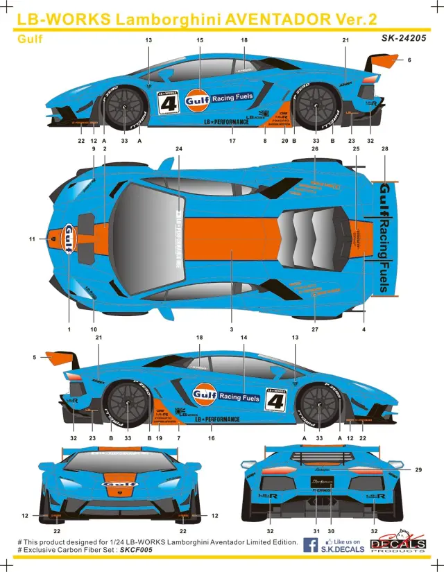 SK decal 1/24 LB-WORKS ランボルギーニ アヴェンタドール Ver.2 Gulf ガルフ フルデカール  SK24205