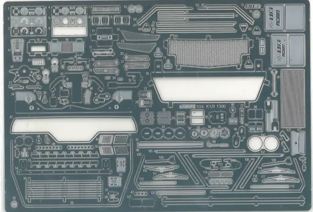 シートやリアバンパー・ドアの内張など2種類入っています。エッチングは今回予備は入りませんが最近のキットの3倍のボリュームになっています。バキュームは予備が1枚ついています。