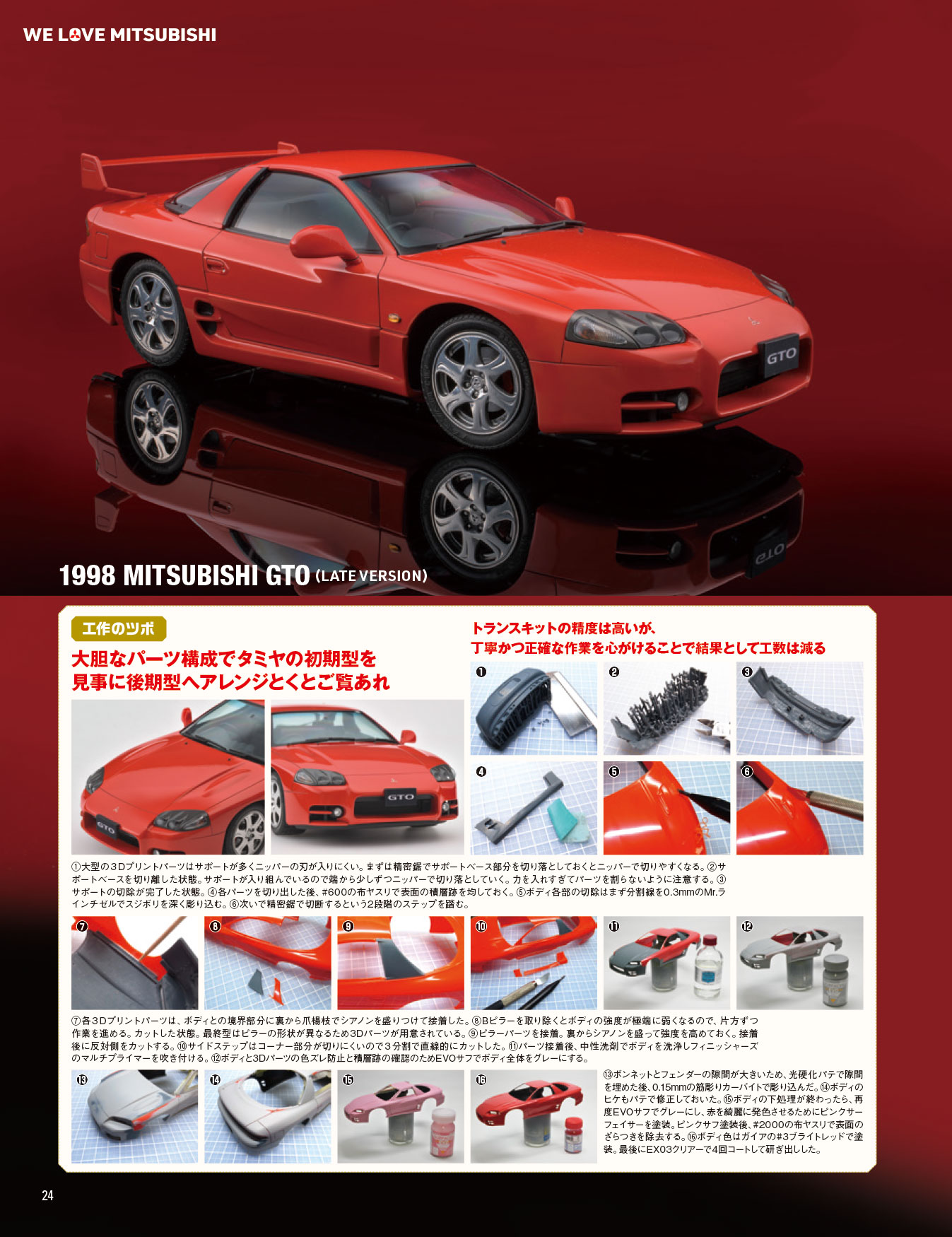 ・パーツ : 3Dレジンパーツ、メタルシール ・本製品は3Dレジン製コンバージョンキットです。組立てには タミヤ 1/24 三菱 GTO が別途必要です。