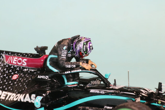 海外ショップ特注スパーク 1/43 メルセデス AMG W11 トルコGP 2020 L.ハミルトン 7th ワールドチャンピオン アルカンタラレザーベース トロフィー&ボード各種セット WS015