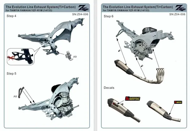 Zワークショップ 1/12 3Dプリントパーツ ヤマハ YZF-R1M エボルーション チタニウム&カーボンエキゾーストシステム タミヤ対応 Z04-006