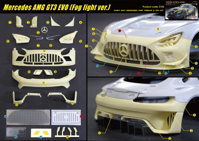 ZoomOn 1/24 トランスキット メルセデス AMG GT3 Evo 2020 フォグライトVer. Z153