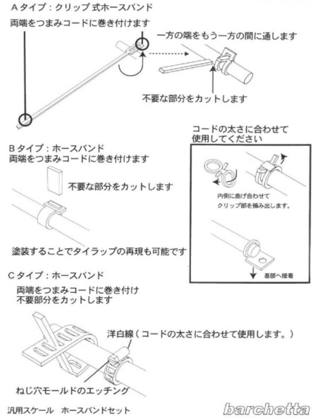 バルケッタ ホースロック バンドセット 4タイプ 1/12 1/20 1/18 1/43 他スケール汎用 bp-1247